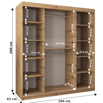 Skriňa s posuvnými dverami v šírke 180 cm TIMEA 2 - dub artisan