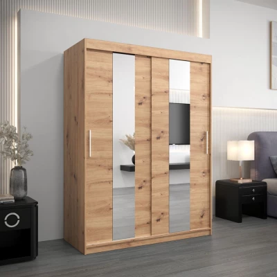 Šatníková skriňa so zrkadlami MARGARET - šírka 150 cm, dub artisan