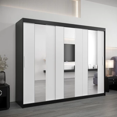 Skriňa s posuvnými dverami DORA - šírka 250 cm, čierna / biela