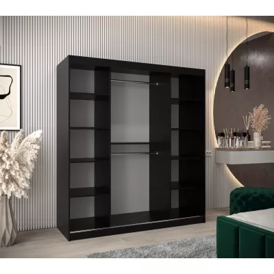 Skriňa s posuvnými dverami REGINA - šírka 180 cm, čierna / dub sonoma