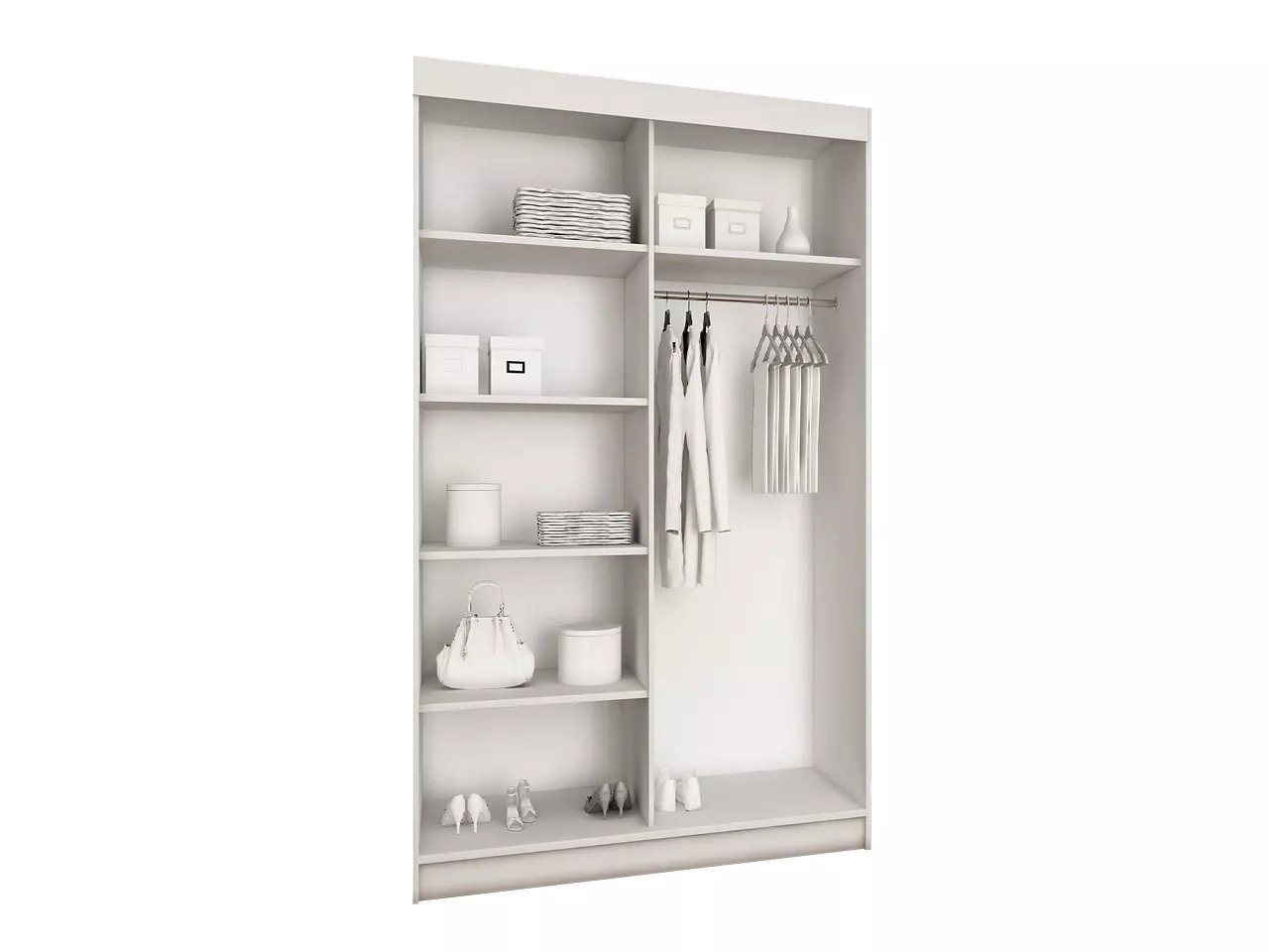 Šatníková skriňa ELVIRA 3 so šírkou 100 cm ponúka dostatok úložného priestoru. Vnútro skrine tvorí šatníková tyč a rad hlbokých políc.