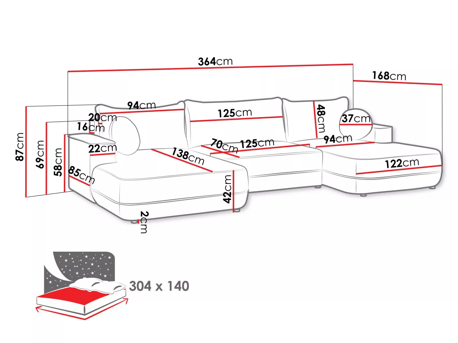 Doprajte si pohodlie, ktoré poteší každý deň! Sedačka do U TACOMA ponúkne dostatok priestoru pre celú rodinu i hostí. Rozkladacia funkcia vytvára priestrannú plochu na spanie, zatiaľ čo úložný priestor schová posteľnú bielizeň aj deky. Elegantné prevedenie s leňoškou a mäkkým sedadlom pozýva k odpočinku aj na večerné sledovanie filmov.
