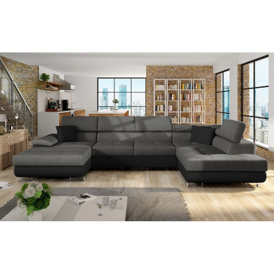 Sedacia rozkladacia súprava do U SAN DIEGO - čierna ekokoža / šedá, pravý roh