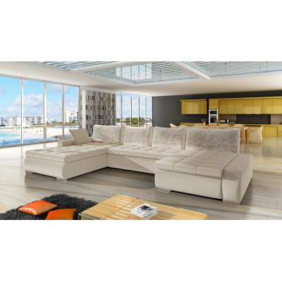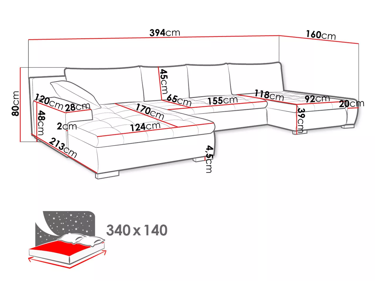 Mimoriadne všestranná sedacia súprava FRUSINA ponúka funkciu každodenného spania s rozmermi 140x340 cm. Chrbtovú opierku tvoria voľne ložené mäkké vankúše na zips. Nechýba ani praktický úložný priestor na lôžkoviny.