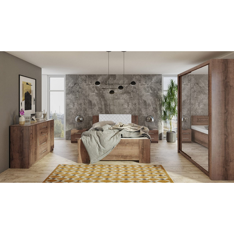 Spálňová zostava s posteľou 160x200 CORTLAND 2 - dub monastery / biela ekokoža