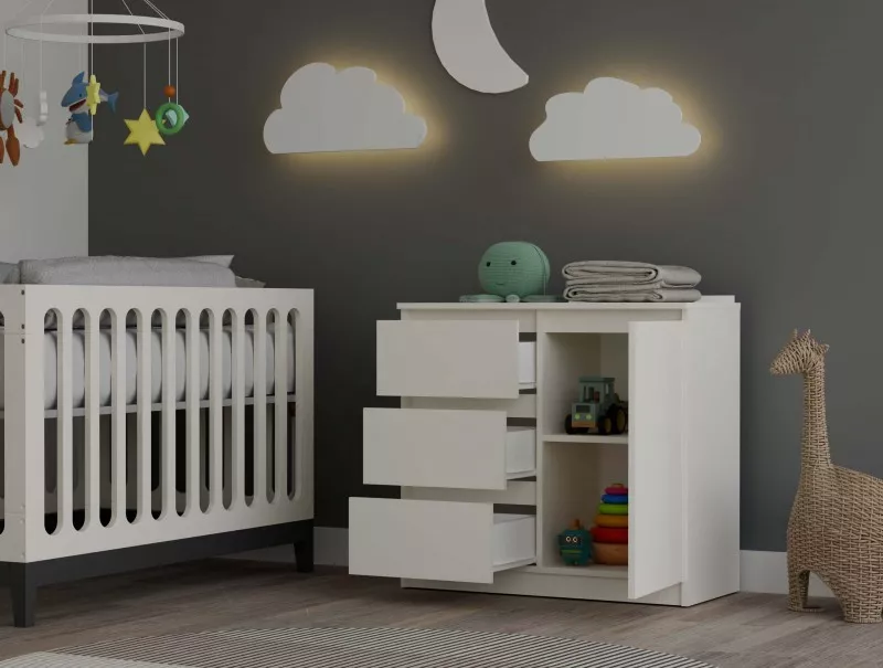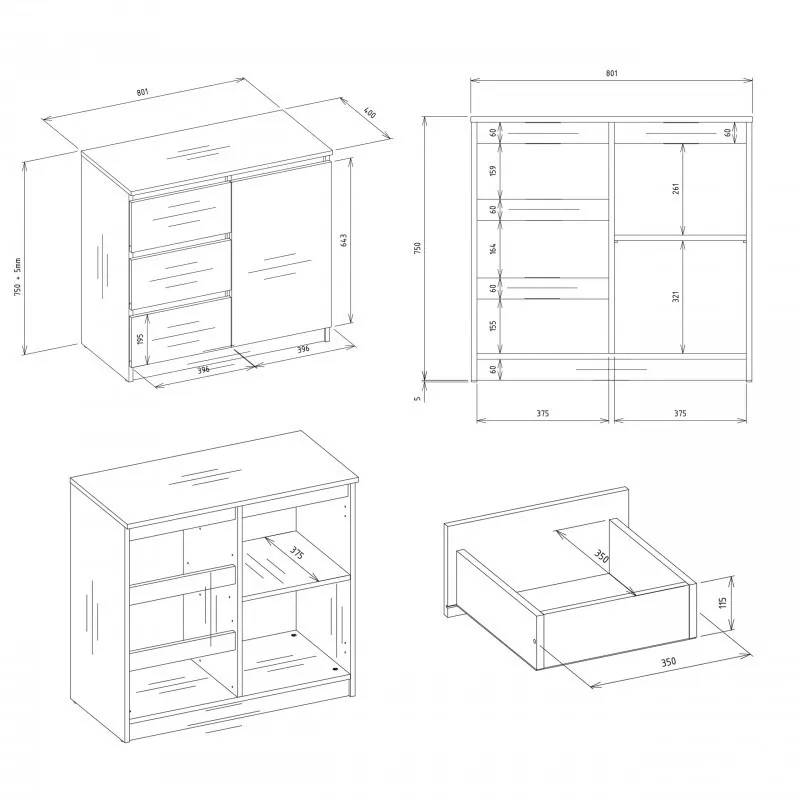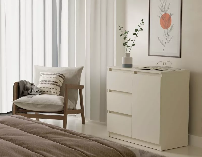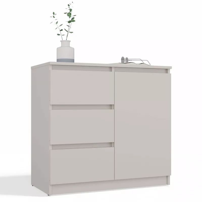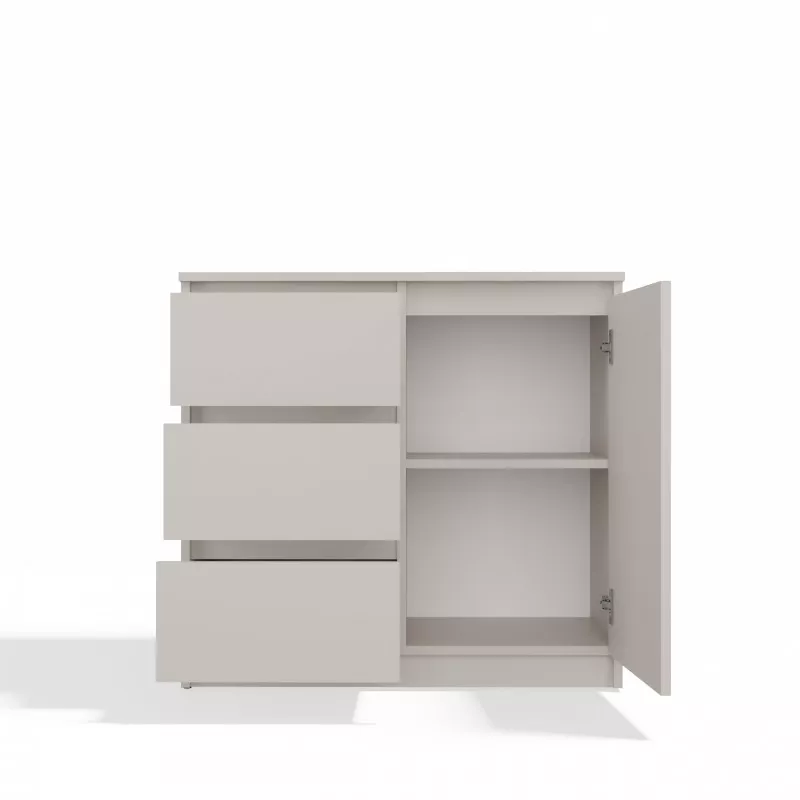 Úzka kombinovaná komoda ELBE je funkčná a priestranná komoda, ktorá ozdobí interiér vašej spálne či obývačky. Bezúchytkové čelá šuplíkov a dvierok zaisťujú pohodlné používanie a zdôrazňujú moderný charakter nábytku. Komoda disponuje skrinkou s policou a 3 šuplíkmi, ktoré poskytujú dostatok úložného priestoru.