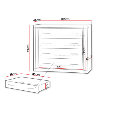 Zásuvková komoda ARIKA - šírka 107 cm, dub hľuzovka