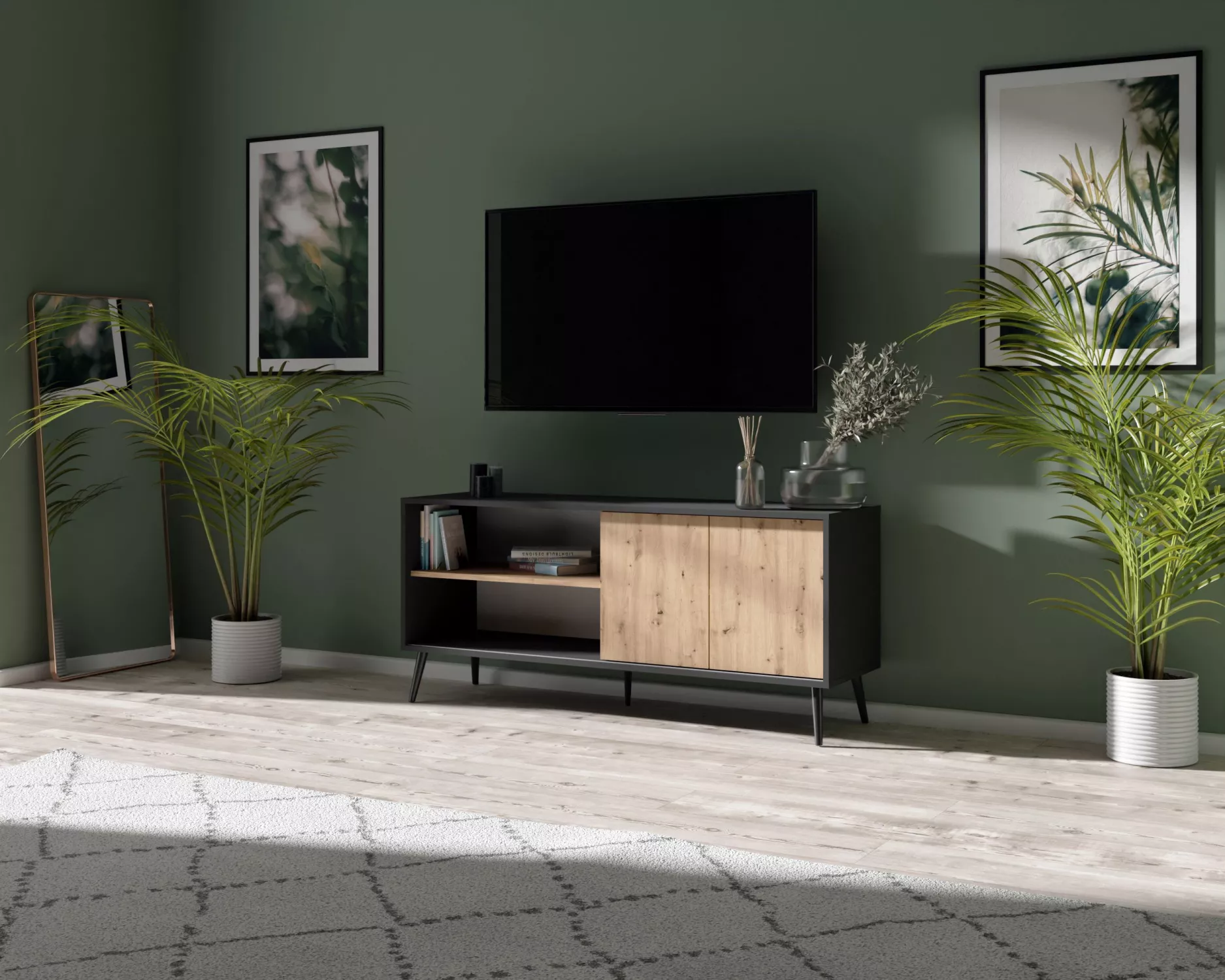 Televízny stolík ESPAN je funkčným kúskom nábytku do obývačky. Praktické skrinky ponúkajú úschovu elektronických zariadení alebo iného príslušenstva.