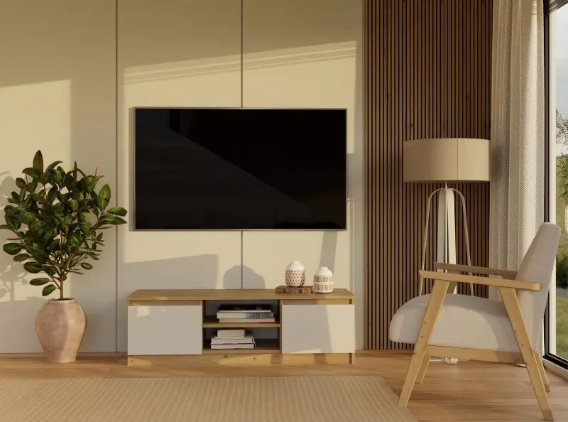 Stolík pod televízor SABA 1 splní očakávania všetkých, ktorí oceňujú spojenie jednoduchosti a elegancie. Otvorené priehradky a 2 skrinky poskytujú dostatok miesta na uloženie TV príslušenstva. Stolík disponuje tiež otvorom na vývod káblov.