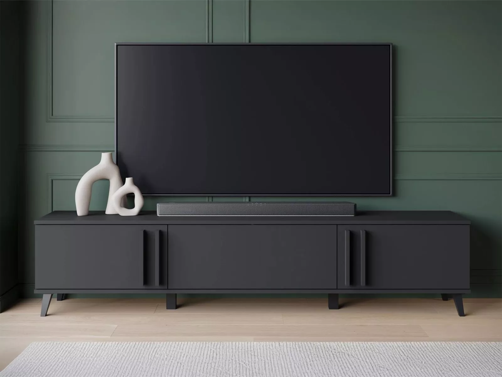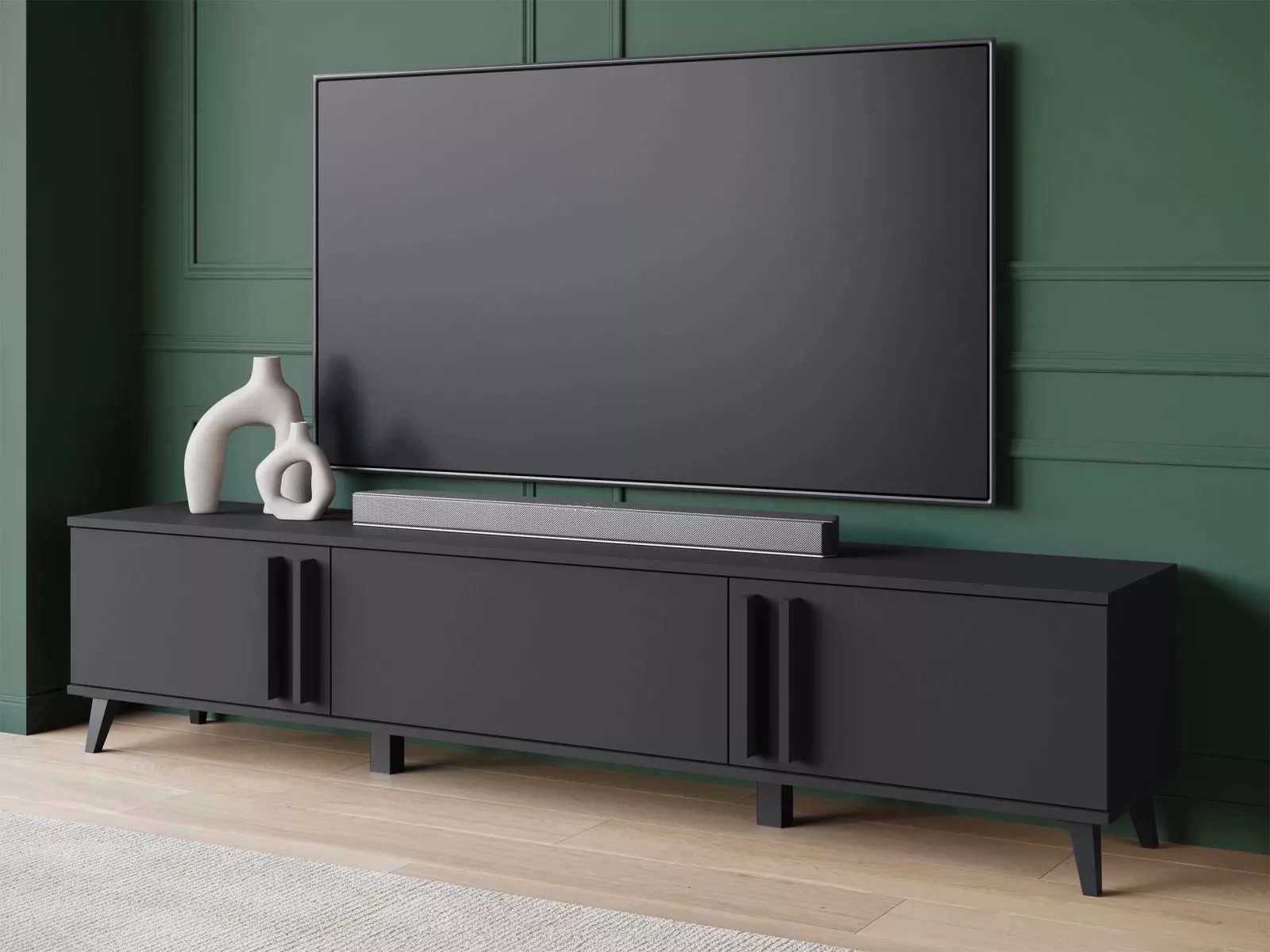 Široký televízny stolík POULSBO - čierny grafitový