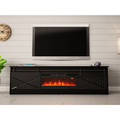 Televízny stolík s elektrickým krbom MITSUKO - čierny / lesklý čierny