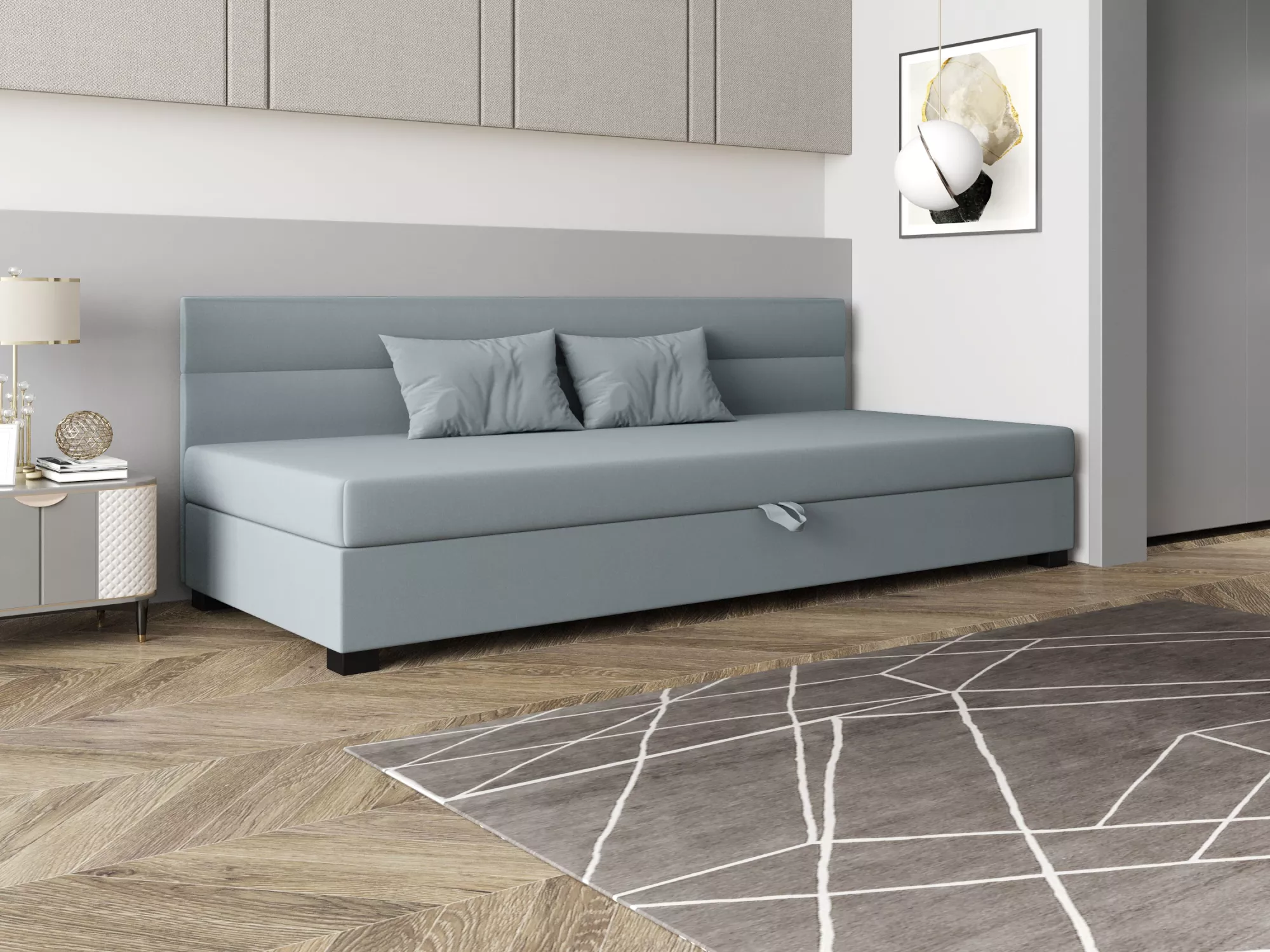 Jednolôžková čalúnená posteľ 90x195 NALINDA BIZ 1 - modrošedá