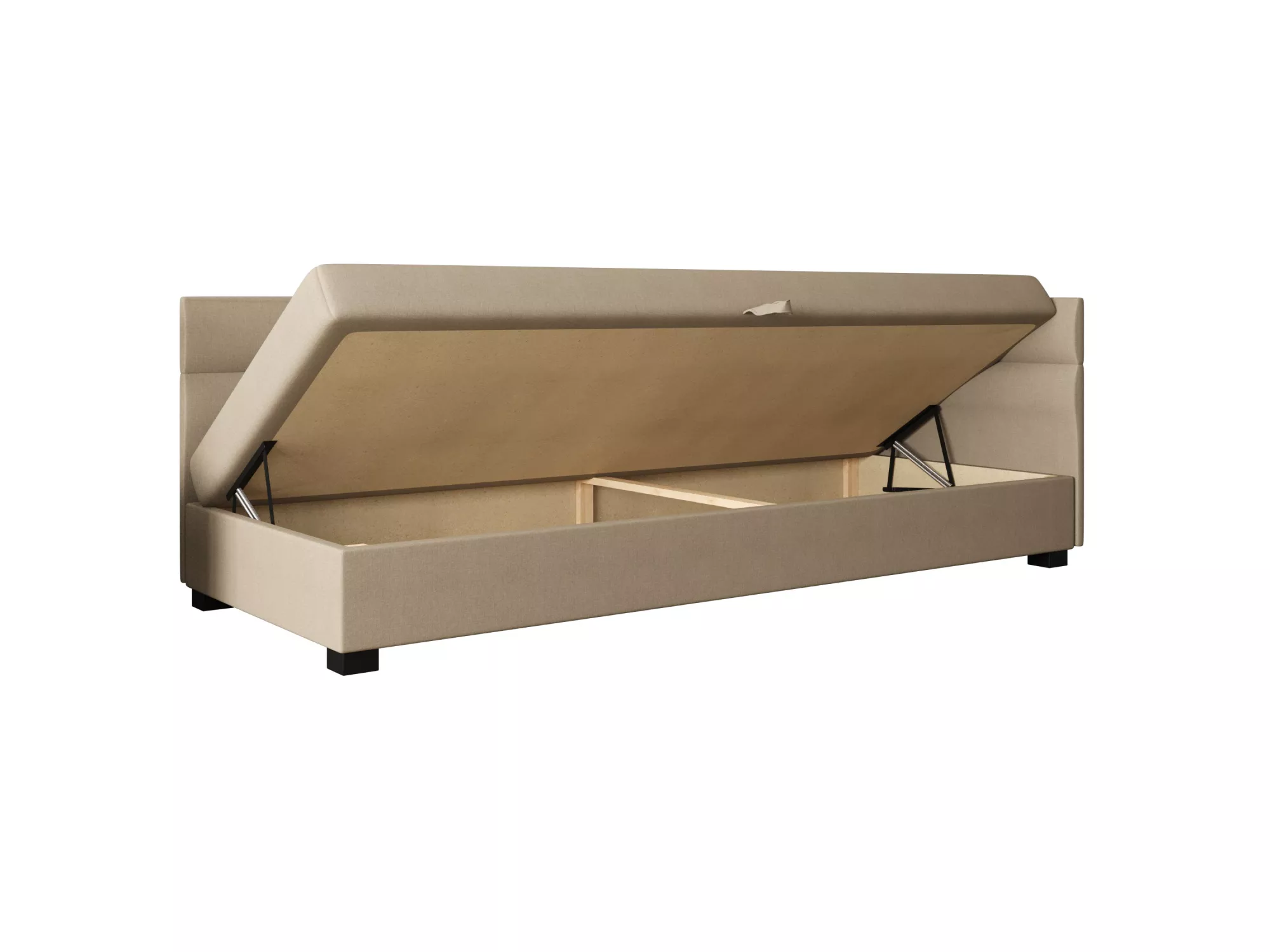 Jednolôžková čalúnená posteľ 80x195 NALINDA PLUS 2 disponuje priestranným úložným priestorom na uloženie posteľnej bielizne alebo sezónneho oblečenia. Vysoké čalúnené čelo spríjemní každú chvíľu odpočinku a zabráni poškriabaniu a zašpineniu steny.