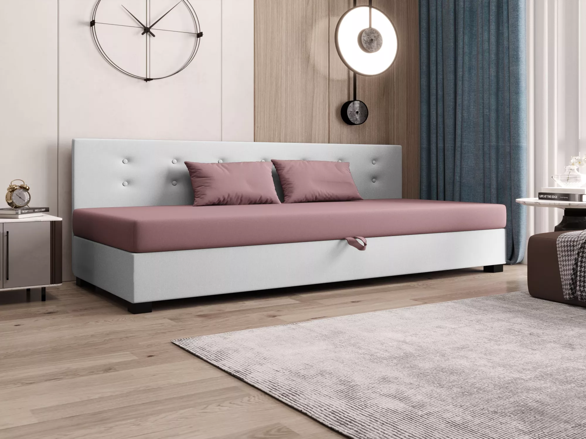 Súčasťou postele je zabudovaný matrac a úložný priestor.