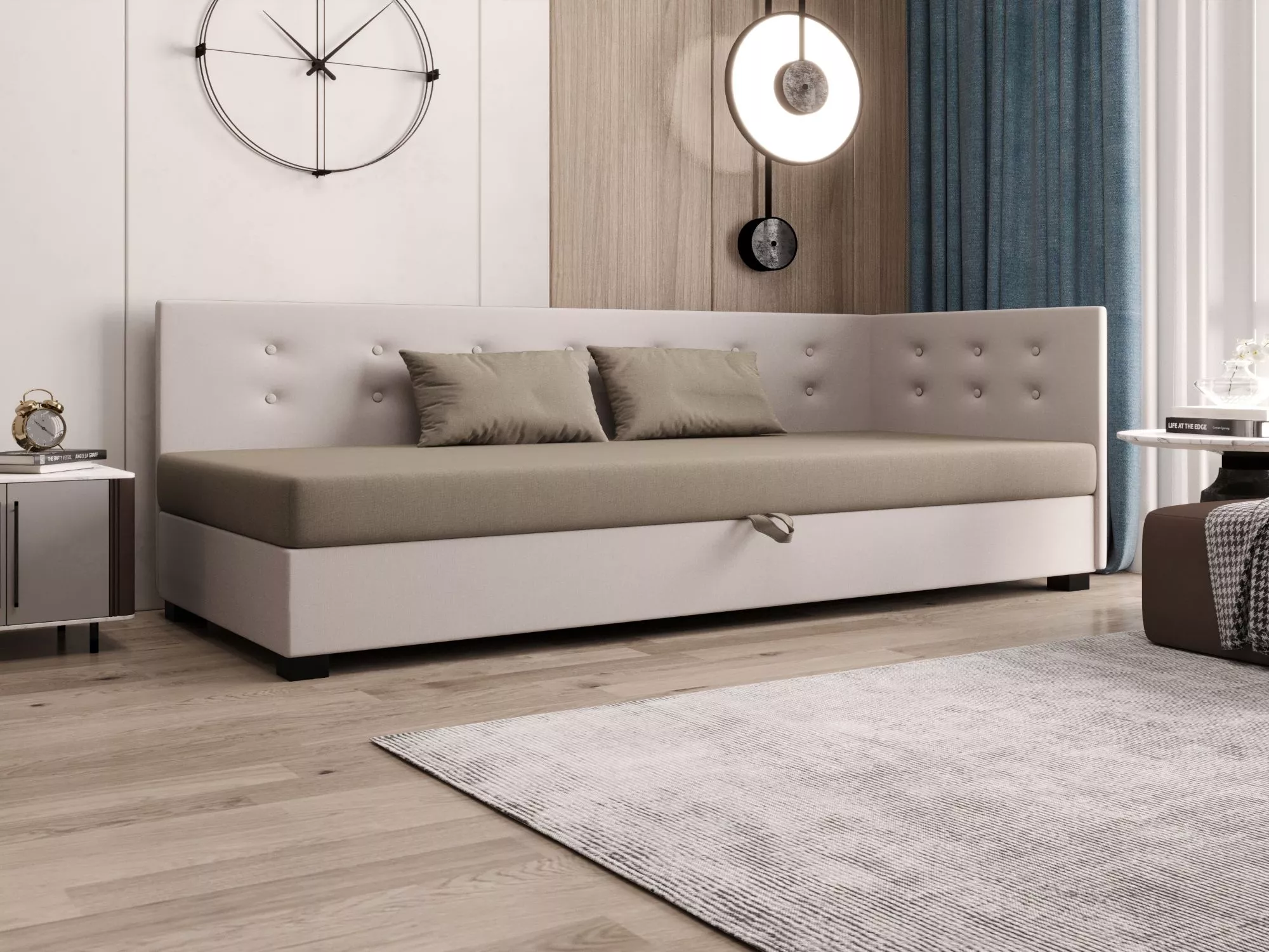 Súčasťou postele je zabudovaný matrac a úložný priestor.