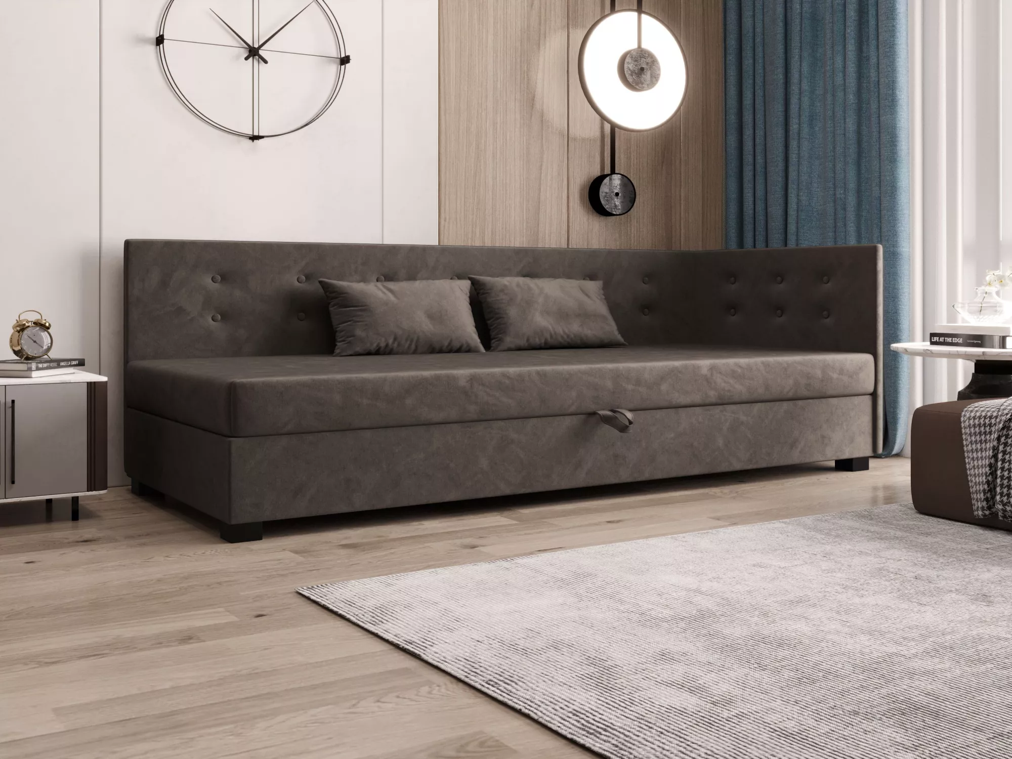 Jednolôžková posteľ 80x195 AJKA PLUS 2 na prvý pohľad zaujme svojím vysokým prešívaným čelom, ktoré zabraňuje poškriabaniu a zašpineniu steny. Posteľ skvele zapadne do každej študentskej izby. Nechýba ani praktický úložný priestor na uloženie lôžkovín alebo sezónneho oblečenia.