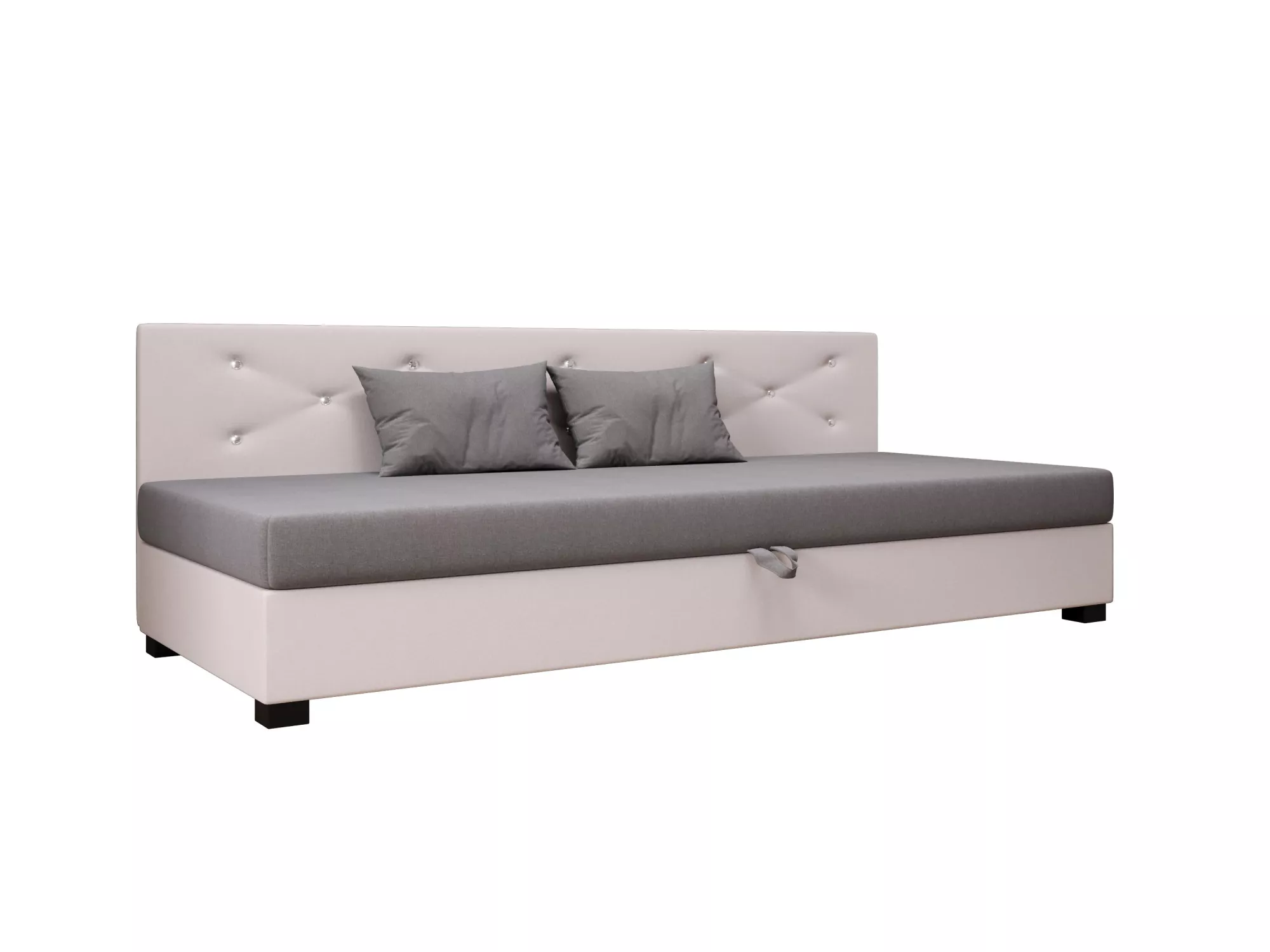 Čalúnená posteľ 120x195 MILEKA BIZ 1 zaujme predovšetkým svojím prešívaným čelom s ozdobnými gombíkmi. Pohodlný matrac poskytne všetok komfort pre odpočinok a relaxáciu. Posteľ disponuje priestranným úložným priestorom, kde môžete schovať lôžkoviny alebo sezónne oblečenie.