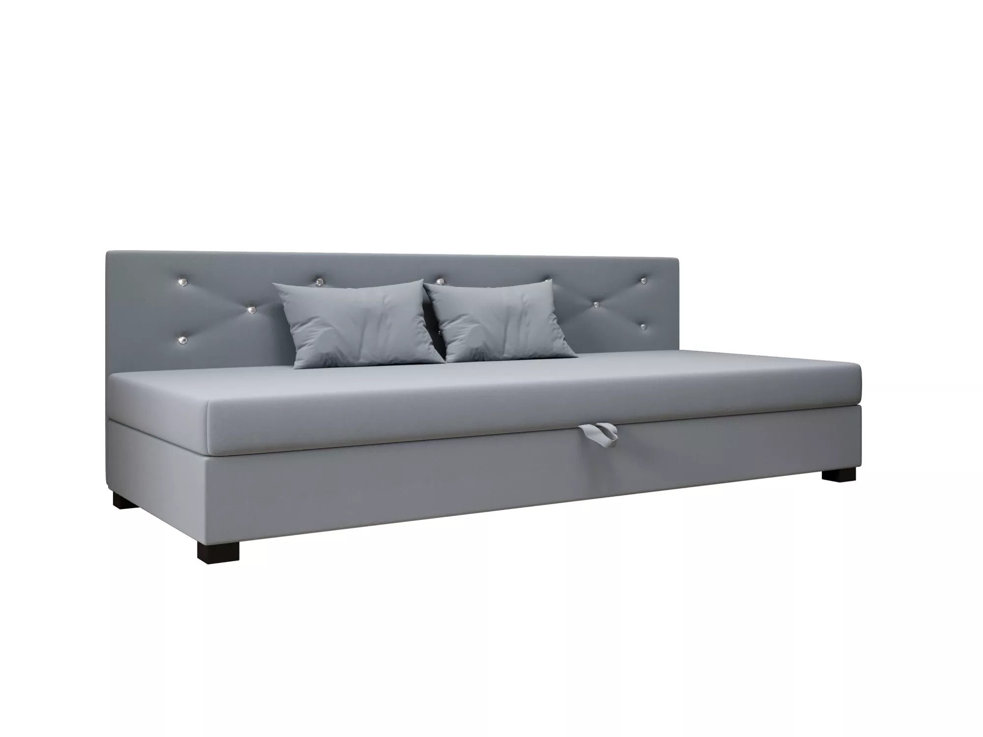 Čalúnená posteľ 100x195 MILEKA BIZ 1 zaujme predovšetkým svojím prešívaným čelom s ozdobnými gombíkmi. Pohodlný matrac poskytne všetok komfort pre odpočinok a relaxáciu. Posteľ disponuje priestranným úložným priestorom, kde môžete schovať lôžkoviny alebo sezónne oblečenie.