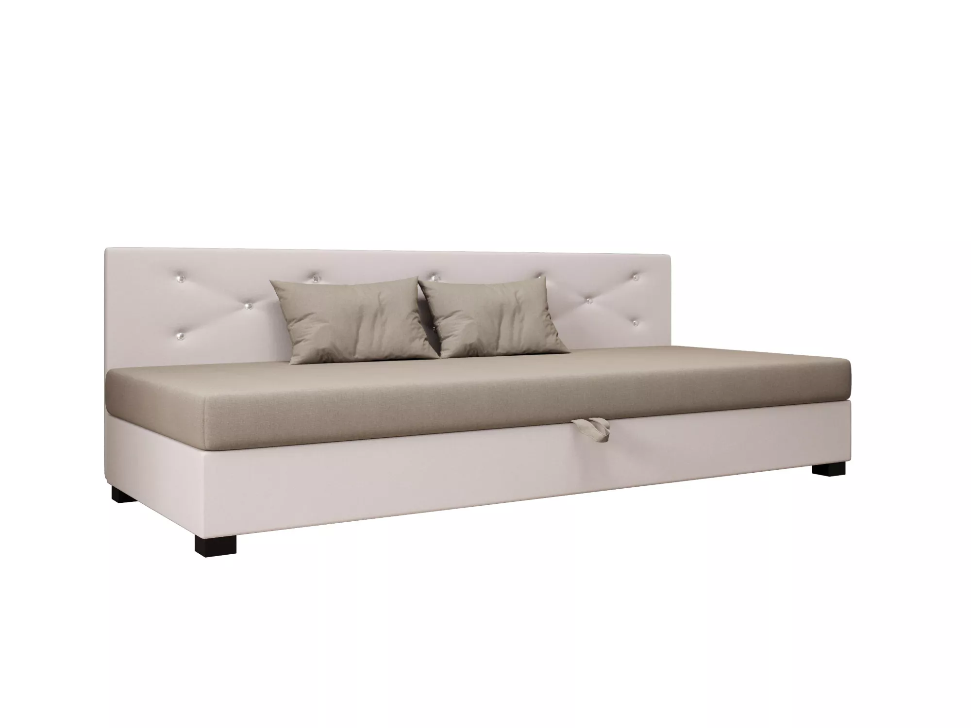 Čalúnená posteľ 100x195 MILEKA BIZ 2 zaujme predovšetkým svojím prešívaným čelom s ozdobnými gombíkmi. Pohodlný matrac poskytne všetok komfort pre odpočinok a relaxáciu. Posteľ disponuje priestorným úložným priestorom, kde môžete schovať lôžkoviny alebo sezónne oblečenie.