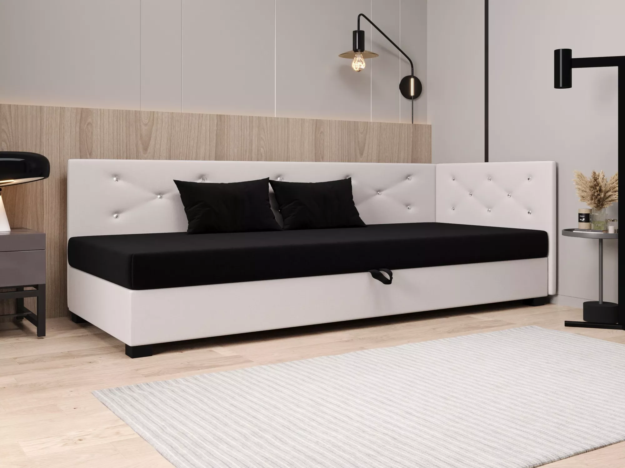 Čalúnená posteľ 90x195 MILEKA PLUS 2 - čierna / ecru