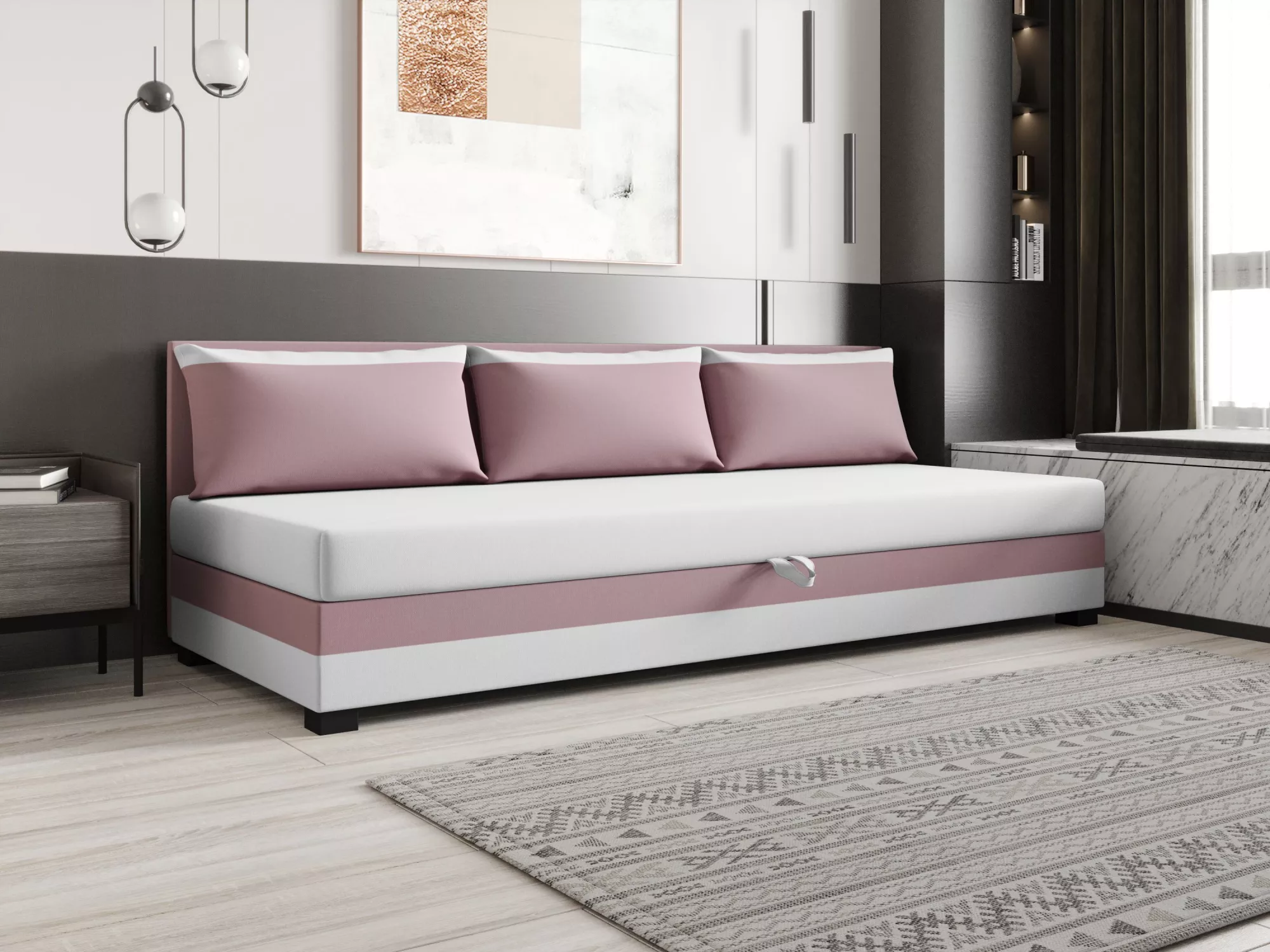 Jednolôžková posteľ 120x195 ZAJDA BIZ 1 s úložným priestorom - ružová / biela