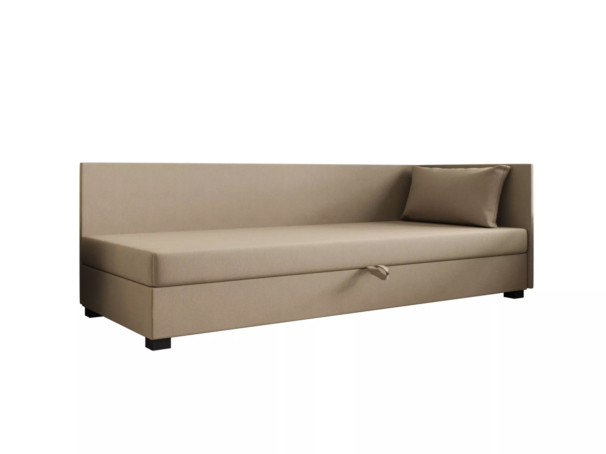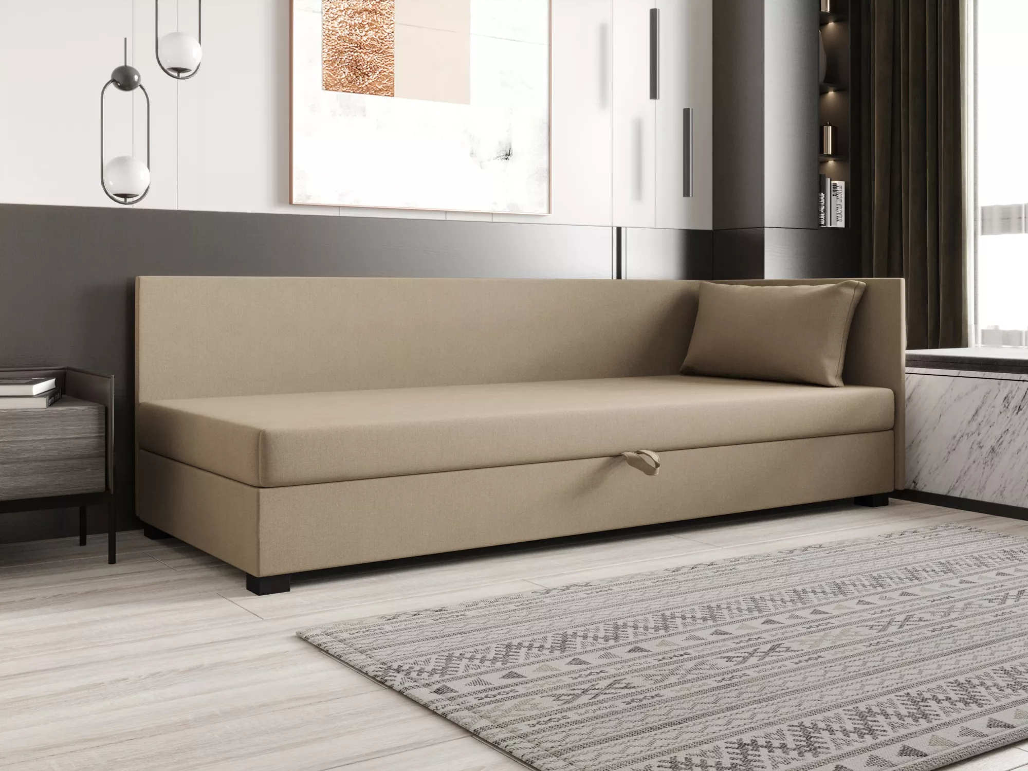 Jednolôžková posteľ 90x195 ZAJDA PLUS 2 s úložným priestorom svojím jednoduchým minimalistickým dizajnom zapadne do každej študentskej izby. Vysoké čalúnené čelo zabráni poškriabaniu a zašpineniu steny. Príjemná poťahová látka zvýši komfort používania.