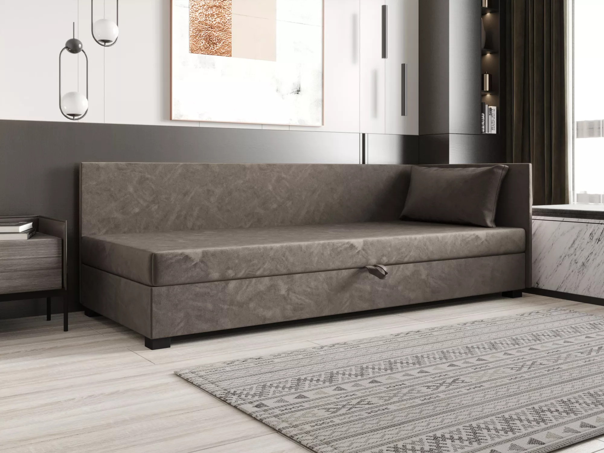 Jednolôžková posteľ 120x195 ZAJDA PLUS 2 s úložným priestorom svojím jednoduchým minimalistickým dizajnom zapadne do každej študentskej izby. Vysoké čalúnené čelo zabráni poškriabaniu a zašpineniu steny. Príjemná poťahová látka zvýši komfort používania.