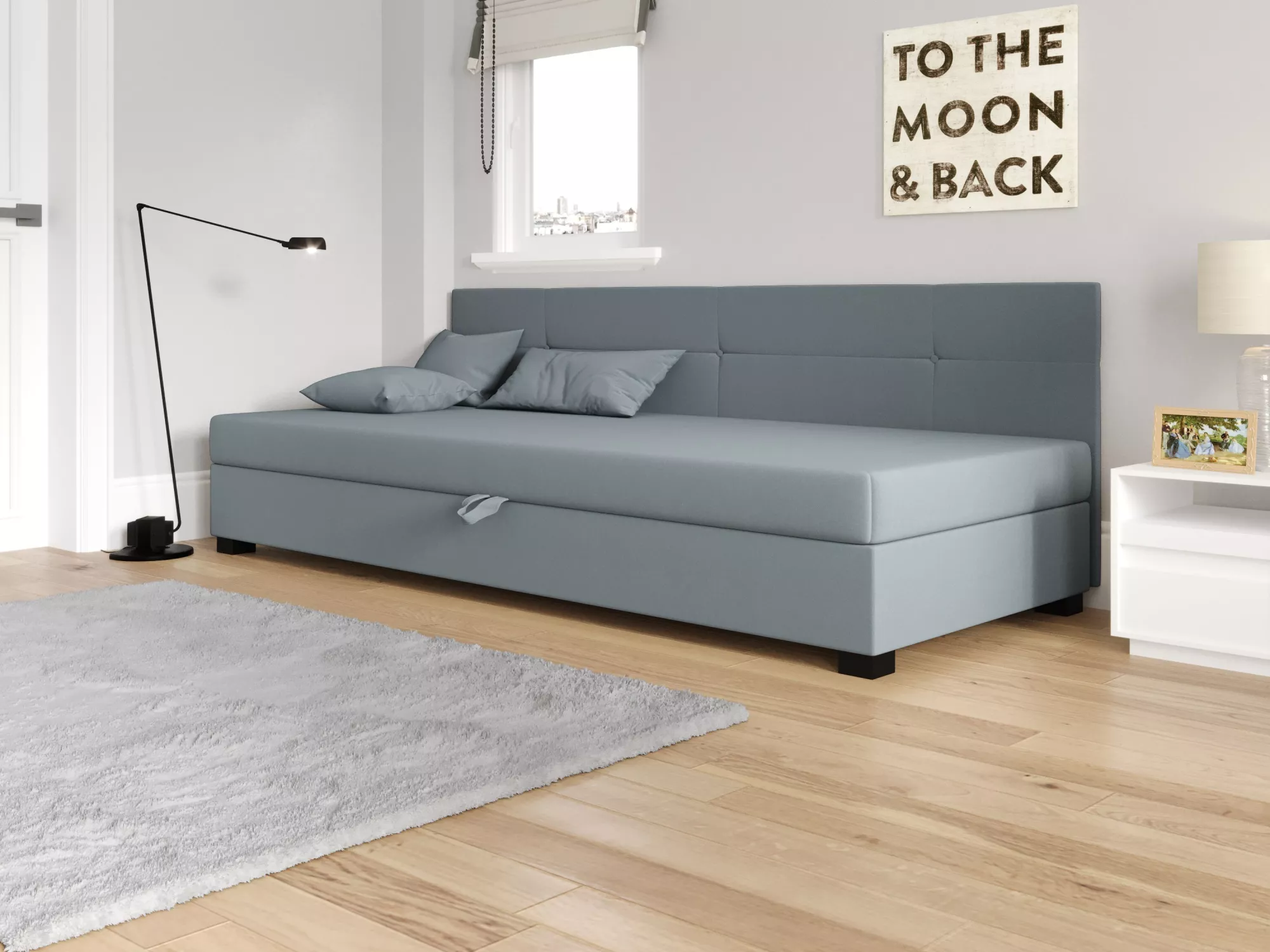 Jednolôžková čalúnená posteľ 90x195 LOCIKA BIZ 2 vyniká pohodlným matracom, ktorý spríjemní každú chvíľu odpočinku. Posteľ disponuje praktickým úložným priestorom na uloženie sezónneho oblečenia alebo lôžkovín. Príjemná poťahová látka zvyšuje komfort používania.