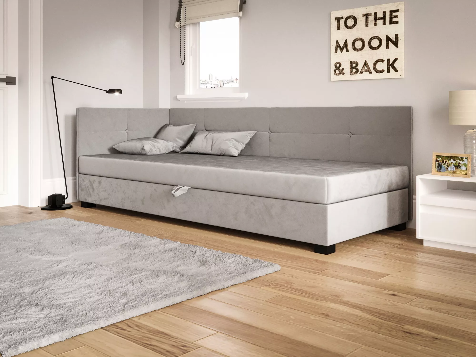 Jednolôžková čalúnená posteľ 100x195 LOCIKA PLUS 2 - svetlo šedá